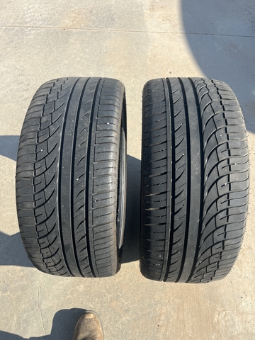 Two tires in good condition. $30 each. Message here or call/text seven eight 5 seven 98 seventy five twenty. Can deliver to Hays or Great Bend.