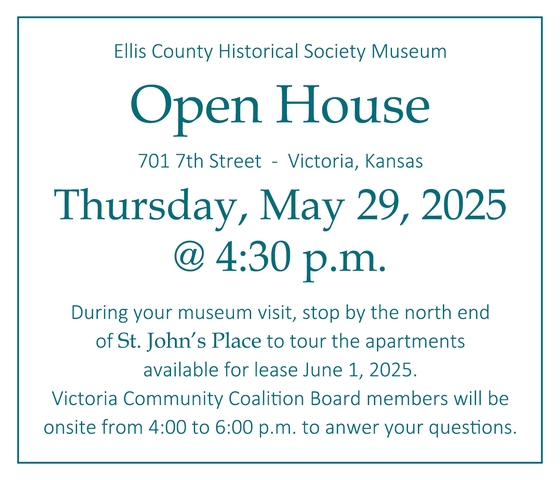 Check out Ellis County Historical Society's progress at St. John's Place in Victoria on May 29th. Everyone is welcome.