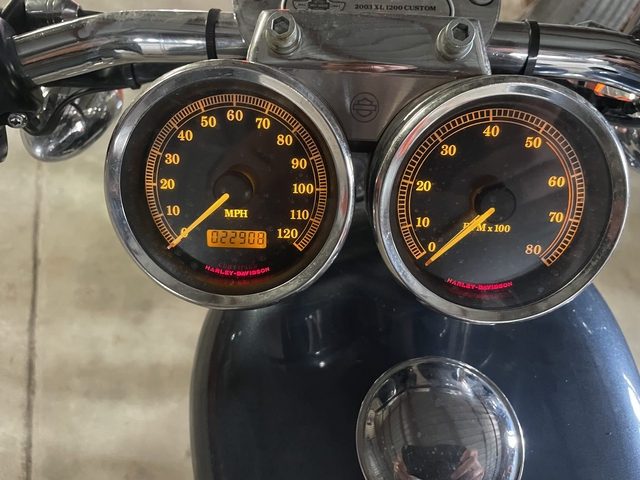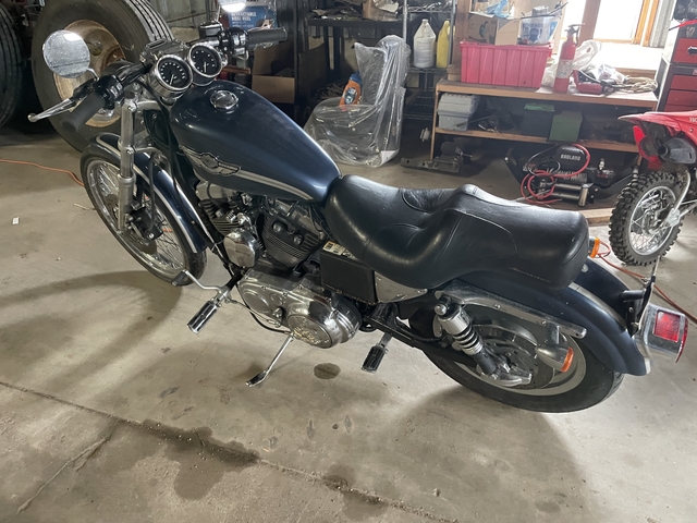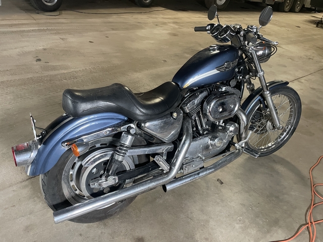 03 Harley Sportster 1200. Has a dent in the tank and exhaust (pictured) runs and drives good