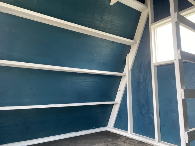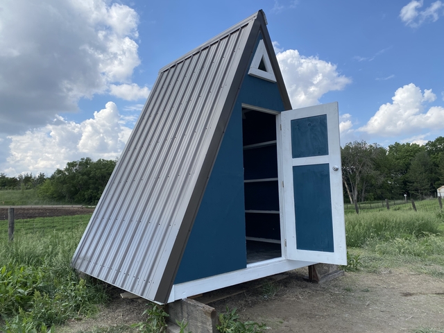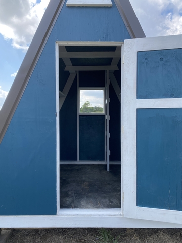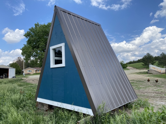 This is a newly built A frame style Mini Cabin. It would be great as a playhouse for the backyard or an off grid cabin by a pond.