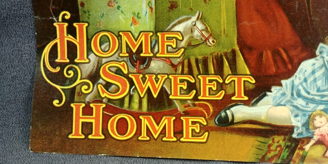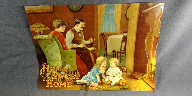 1900s Lithograph Home Sweet Home Family Baby Toy Fireplace Art Print Antique