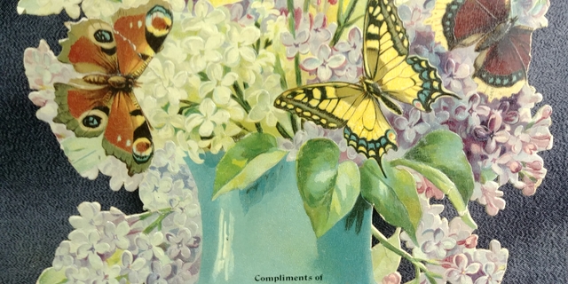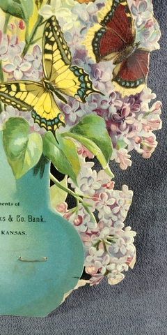 1920s Simpson Shanks & Co Bank Kansas Die Cut Butterfly Flower Vase Calendar 11"