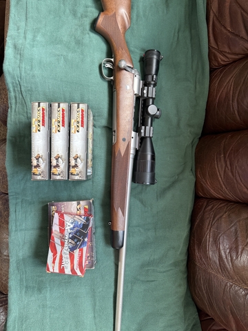 Savage 114 with accutrigger and detachable bow magazine. Stainless barrel and action. Nikon black scope 3.3-10 with adjustable objective. Butler creek caps. Some scratches and nicks from use but not abused. 59 rnds of barnes vor-tx long range and 41 pieces of brass. Prefer cash but might trade if its right.