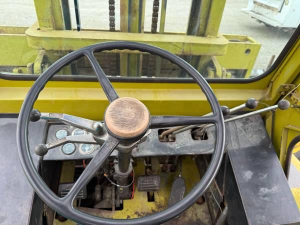 6 cylinder gas engine, enclosed cab, 15' lift height with tilt and side shift, 6'6" Long heavy duty forks, dual drive tires, 12000# lift capacity. This machine runs and operates great, ready to go right to work, everything works like it should. Shipping available anywhere in the United States. Please call us at 620-736-2038 for more information or to come look at it. Also, please visit our website at www.riggstractorcompany.com to view our current inventory.