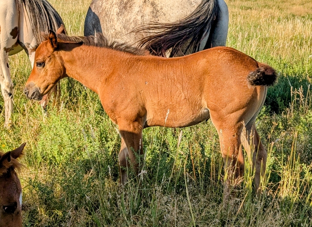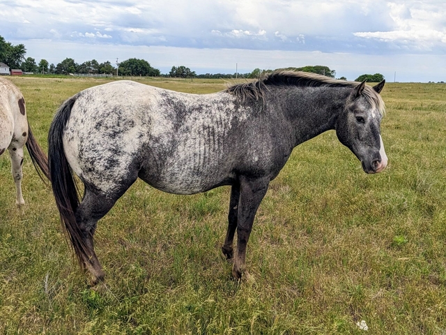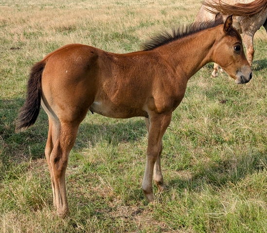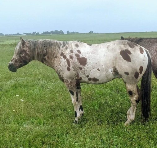 JNJ Smokin N Silence is a bay POA with snowflakes filly. Her sire is: Silent Review (Champion Producer) (he is leopard in pictures) and Dam is: KC Not So Silver (grand daughter Salty Stole The Look) (blue roan fewspot in pictures). She was born 5/30. She will be weaned around 9/30 and ready for her new home. Payment plans available.