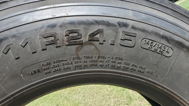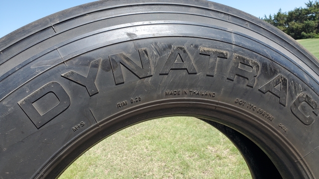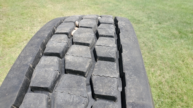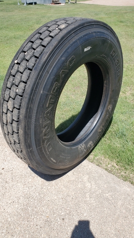 Used drive tire. Lots of life left. Put a new set of 8 on early in 2025 and this one had only been on a little while.
