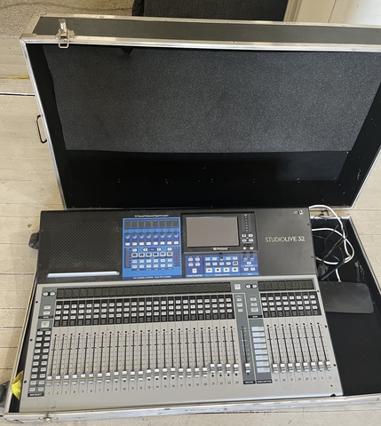 32 Channel Mixing board. Perfect working condition. Comes with a road case and a WiFi router.