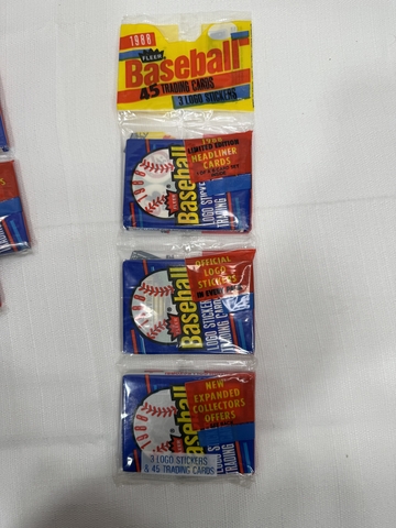 1988 Fleer Baseball sealed packs of 3. 45 cards, $10 each. 19 available. Located in Plainville