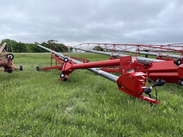 New Hutchinson 10" x 83' Swing Away Auger Equipped With 540 RPM PTO Drive, Hydraulic Cylinder Lift, AR Flighting at Main Wear Points, Extendable Axles. Set-Up and Ready to Go. $1,000 rebate available now through August 31, 2025