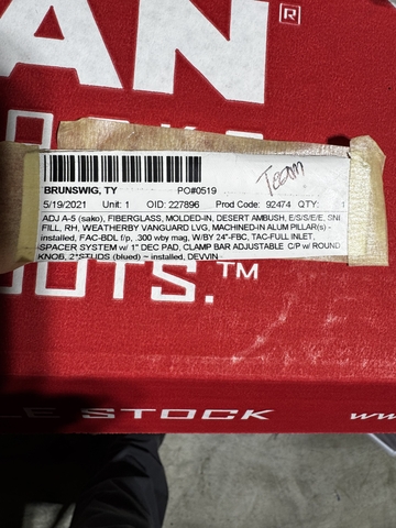 Ordered to fit a Weatherby Vanguard action with a #2 barrel profile, fully bedded with machined in aluminum pillars. Hardly used, great shape, was just over $1,000 when ordered. $600 obo.
