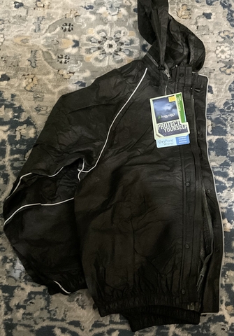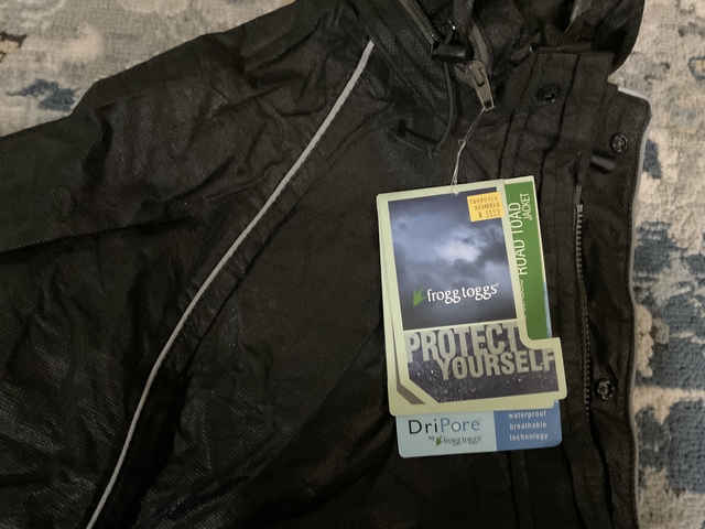 The Frogg Togg NEW rain jacket in size M is a durable and waterproof jacket perfect for all seasons. Bought on our last ride when my DIL forgot to pack her rain gear & then NEVER USED. Scheel's price of $39.99 still on tag.