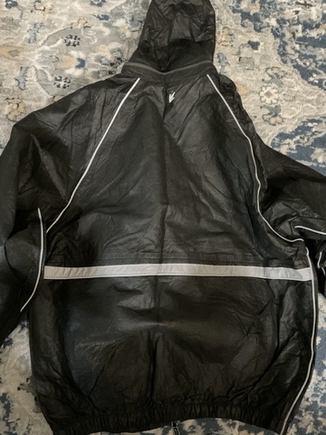 Made of polypropylene material, it features reflective strips for added safety during low-light conditions. The jacket has a convenient zipper closure and is machine washable for easy care.