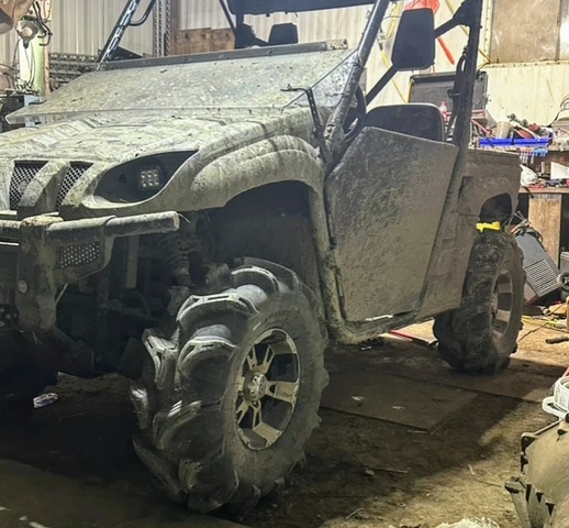 Yamaha Rhino 660 side by side, 4x4, diff lock, fresh 686 top end with low miles, hard to find half doors, look close at those near brand new 27 inch tires, lift kit, stereo with overhead speakers, winch on front, 2" rear receiver hitch, dump bed.