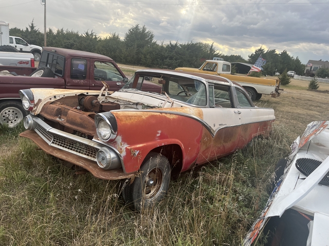 55 Ford Crown Victoria, very little rust , have period correct motor and transmission restorable have hood and bumpers call 785-635-1147 will trade and take offers