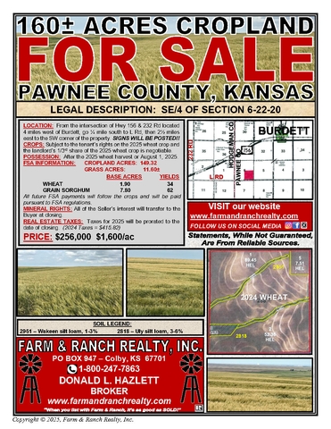 160± ACRES CROPLAND - PAWNEE COUNTY, KANSAS