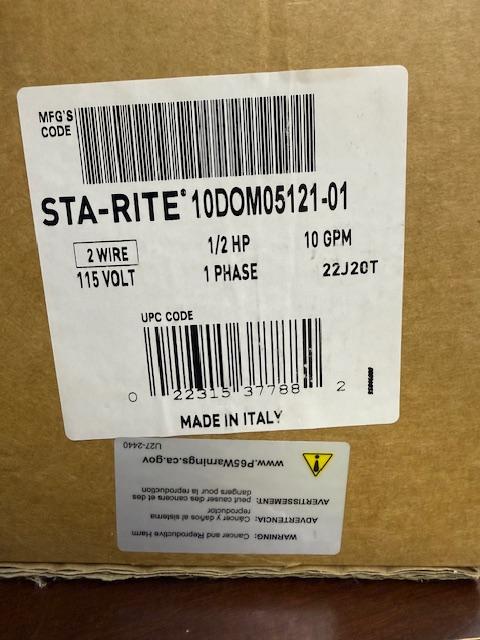 Sta-Rite 10DOM05121-01, 4" Multistage Submersible Effluent Pump, 1/2 HP, 115 Volts, 1 Phase, , 2-wire, 1-1/4" Discharge, 10 GPM Best Efficiency Flow, Manual, 10 ft Cord