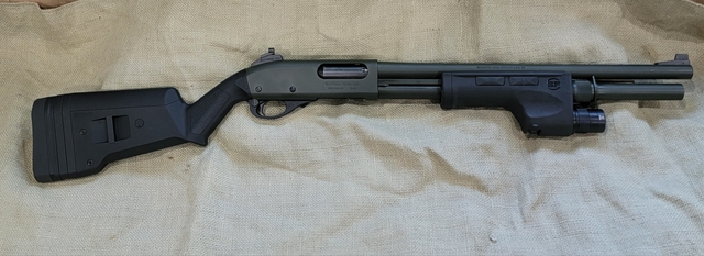 Used Scattergun Technologies (Wilson Combat) 870, 12ga, Surefire light forearm, Magpul stock, original furniture included, and a soft side Wilson Combat case. $1300.00