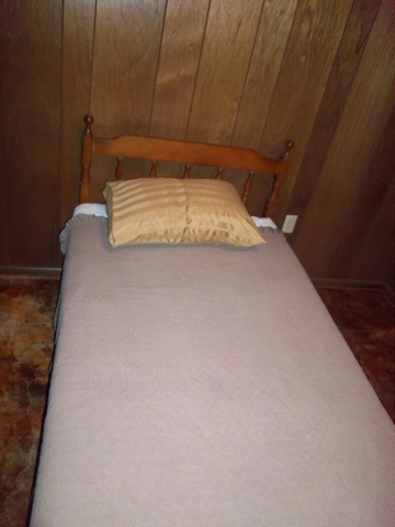 twin size bed with frame and box springs and mattres good shape with head board thanks for looking.