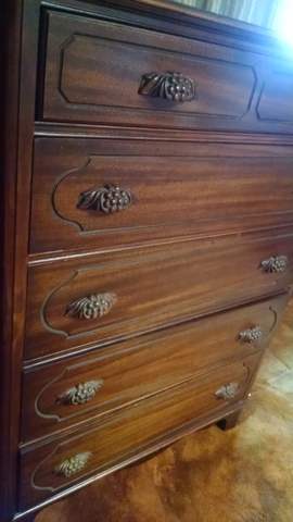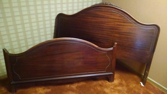 Thomasville Early 1900s Bedroom Set: Headboard, Footboard/rails, Tall Dresser, Vanity with Mirror $1000