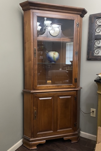 Tell City Corner Curio Cabinet, lighted, $500 (two available)