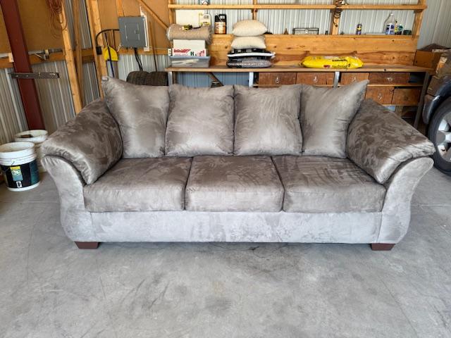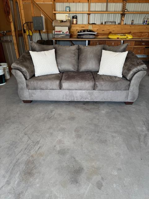 This is a "BRAND NEW" Sofa, It has the Micro Fiber Material, Pillows are included. $325.00 Cash, Cashier's Check or Money Order are Excepted for payment.