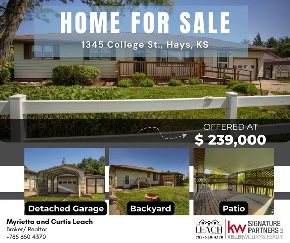 Craving more space but still want to be close to Hays? This 5-bedroom, 2-bath home offers room to spread out while keeping you near town. A finished basement gives you added flexibility for living or entertaining. Need accessibility? This home includes a ramp for wheelchair access. Enjoy quiet mornings or gatherings on the covered deck. Sitting on a spacious 0.40-acre lot, you’ll appreciate the extra room between you and your neighbors. A 24' x 16' detached garage provides great storage or workshop potential. Call Keller Williams Realty at 785-650-4370 for more info or to schedule your showing!