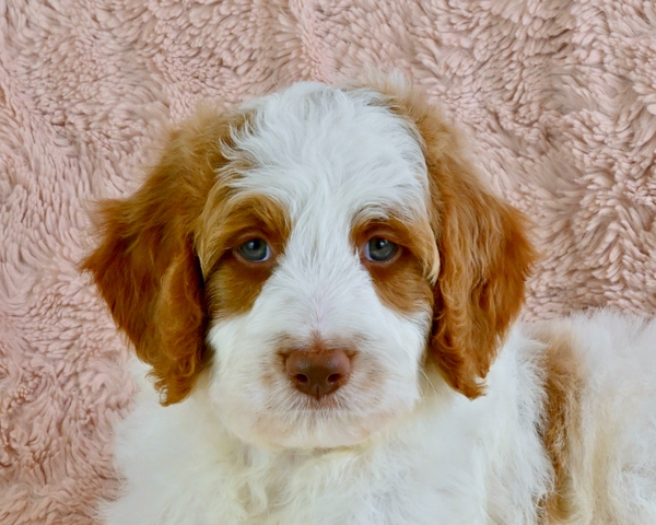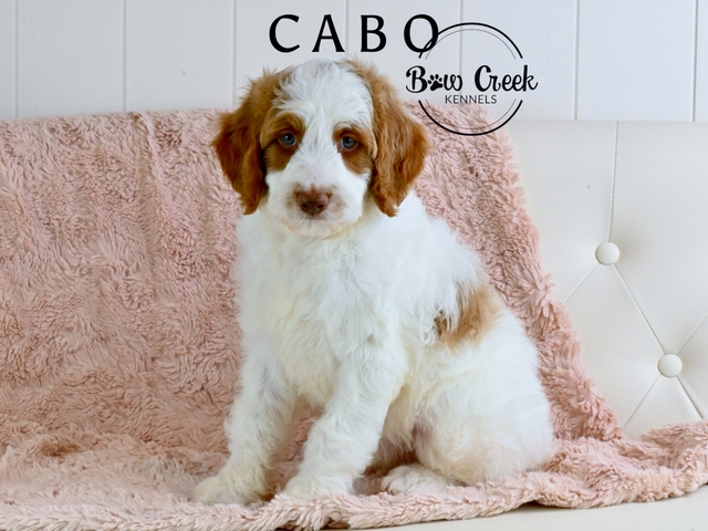 Cabo is a charming little guy full of personality—friendly, playful, and incredibly loving. He loves to cuddle, explore, and make new friends. Fully vaccinated and ready to join your family, he’s hypoallergenic and great with kids and other pets. Parents are genetically tested and comes with a 2 year health guarantee. He will also be an excellent hunter as Brittany Spoodles have a natural point just like Brittanys. He is ready to go home!