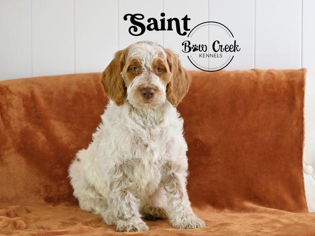 Brittany Spoodle are a mix of Brittany Spaniel and a poodle. These pups are friendly, playful, and incredibly loving. They loves to cuddle, explore, and make new friends. They come fully vaccinated and ready to join your family. Brittany Spoodles are hypoallergenic and great with kids and other pets. The parents are genetically tested and comes with a 2 year health guarantee. They will also be excellent hunters as Brittany Spoodles have a natural point just like Brittanys. They are ready to go home!