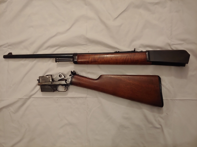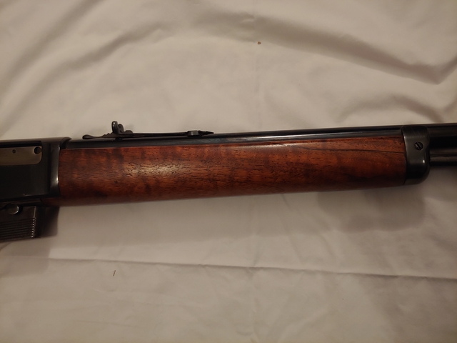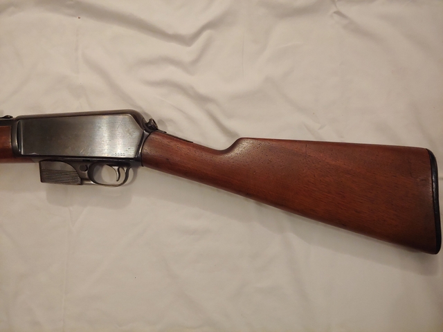 This is an excellent 1905 Winchester.This gun was only made 15 years. It has a low serial number of 53XX. Less than 30,000 were made. It has plugged holes from a tang sight. Blueing and wood finish are excellent. 32 caliber. It has a repaired crack in the fore stock. Three 1 six - six one 9-9 nine six nine.