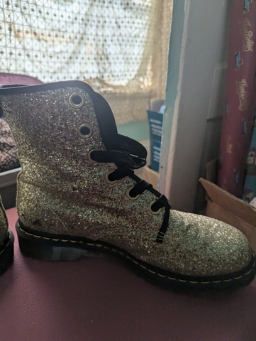 Womens size 11 Doc Martens. I have 1 peach color and 1 sparkly gold.