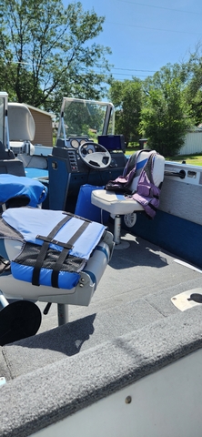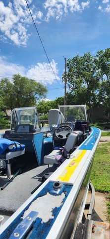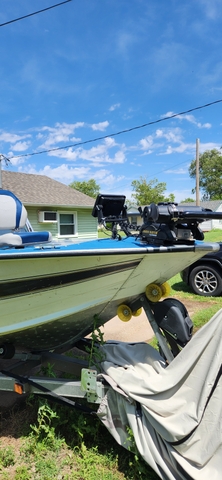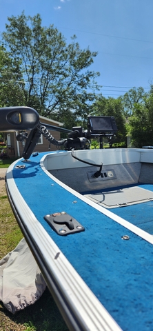 Bluetooth stereo, Bimini top, travel cover, seats are in great shape, 2 live wells front and back, lots of storage, new 3/4" floor with carpet, 4 batteries, 2 for trolling motor, 1 for starting, 1 for electronics, minkota 3 bank charger, big anchor with 200 foot of rope, pole holders, Full walk thru windshield, most all new wiring, trailer has new wiring and LED lights, good tires, bearing buddies, Also comes with a Honda 9.9 4 stroke motor, tiller handheld & steering cable with throttle, electric start,