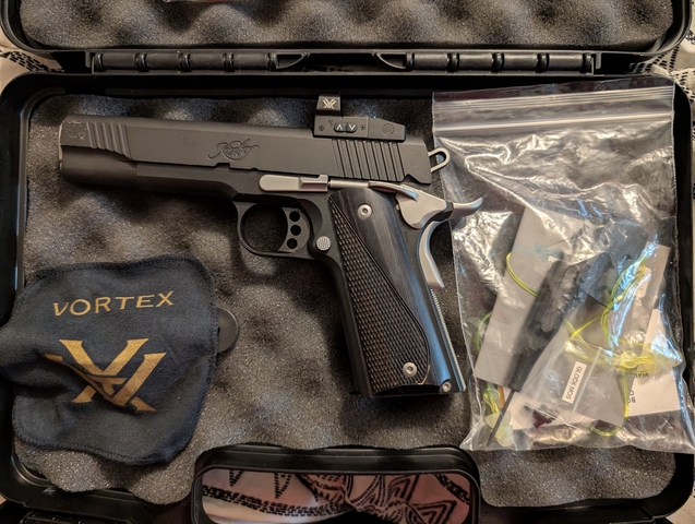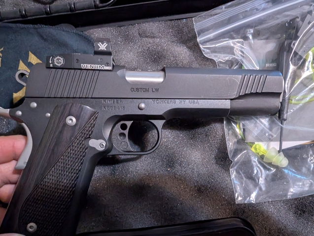 Very nice Kimber 1911 has Vortex venom sight. Slight holster wear on front of slide, only on one side. $800
