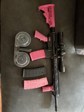 Comes with 3 30 round mags and 1 100 round mag and about 300 rounds of 5.56 and .223 less than 400 rounds threw the gun
