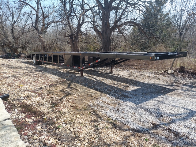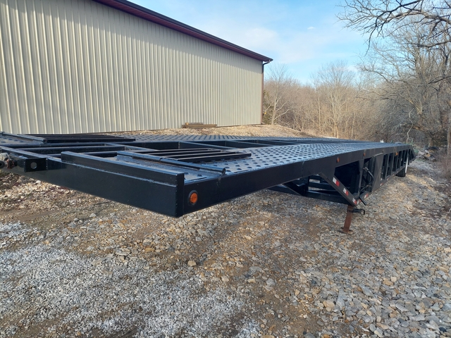 2016 SunCountry 53' single axle 3-car semi trailer with air ride and brakes and front flip outs . Trailer will haul 3 Ford Transits or 3 half ton pickups. Floor has stamped holes and uses over the tires straps to secure vehicles. Includes two pairs of ramps: 8' Aluminum ramps that slide in the back and 8' steel ramps for hauling farm equipment. New tires and aluminum wheels in 7/23