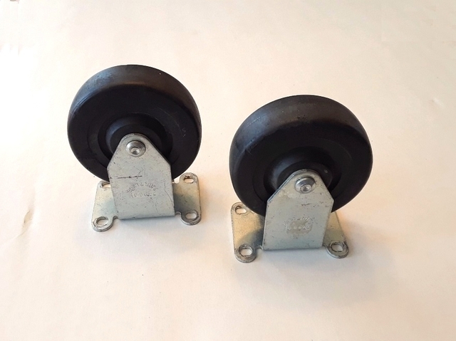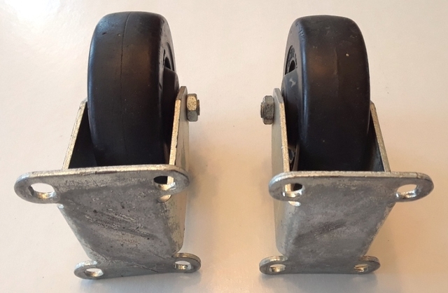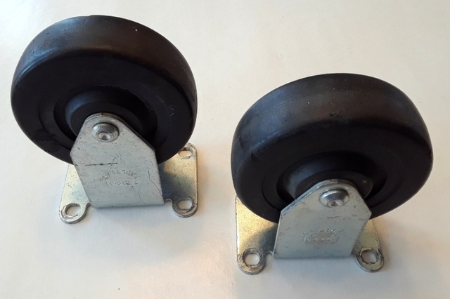 Two - 4” Wheels - $10.00 Selling two straight line wheels. Heavy duty 4” wheels on steel body/frames. Dimensions – Overall 5” x 2 ½” www.4sale-site.weebly.com