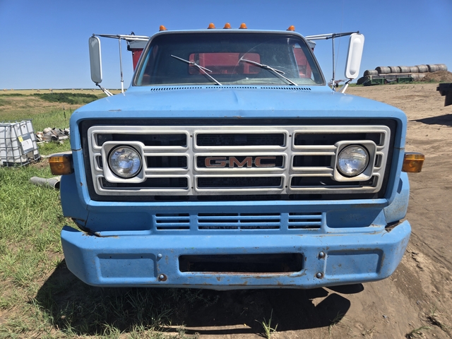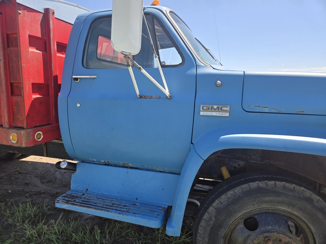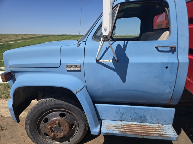 Good condition grain truck that runs well. Has 350 8 cylinder gas motor, 4 speed manual, typical brake issues for these models, tires fair. Exterior well kept, has 16 ft box, steel floor, with hoist that lifts well, has nice rollover tarp, tear on back part. Overall a nice older grain truck. 785 675 eight 4 eight 9, text only