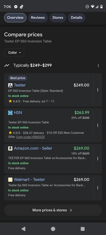 Gently used inversion table, in great shape just needing to sell some things. The price is not negotiable, comparison prices shown in picture. You haul but we'll bring it upstairs for you :)