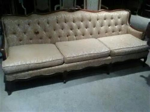 french victorian sofa antique 7ft long, paw wood feet, wood crown, wood arms