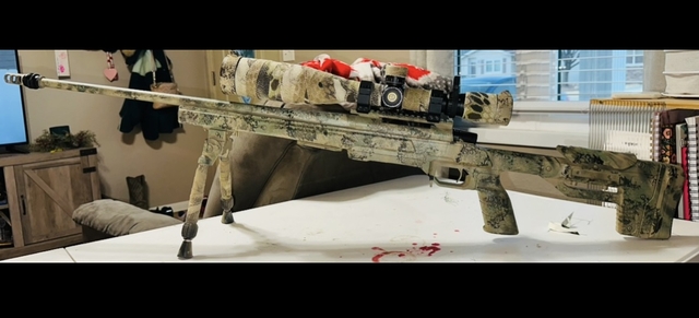 This is a 7mm PRC Rifle. The barrel and internal parts are made by Howa. The chassis is made by MDT. The bipod is a Swagger bipod. The muzzle break is QD for a suppressor. The optic is a Athlon ARES ETR UHD 4.5-30×56 APRS1 FFP IR MIL.