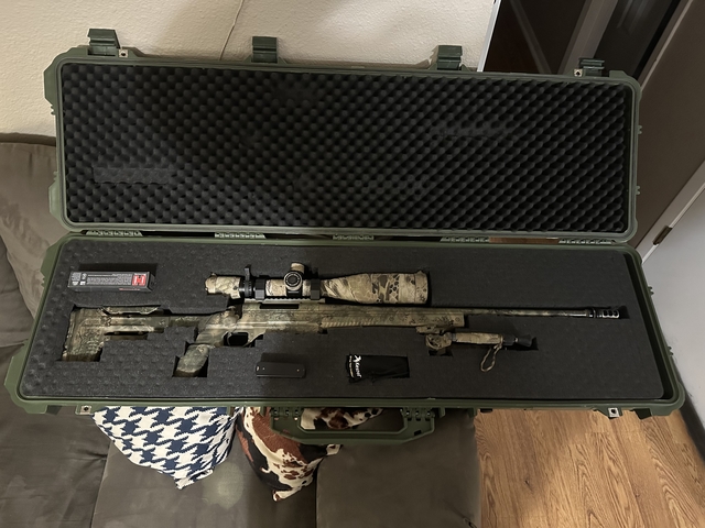 It comes with the original stock/parts, the case, a MDT magazine, 1 box of ammo, and a Kestrel Ballistic. Only had 6 rounds through it. It's sighted in at 100 yards.