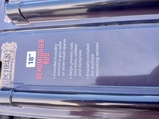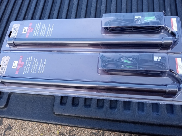 Two new in package rod dehumidifiers, 18" long. Original price was $28.99. Use in gun safes, closets, damp areas to remove moisture. Asking $17.50 each