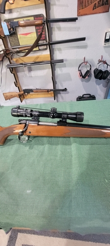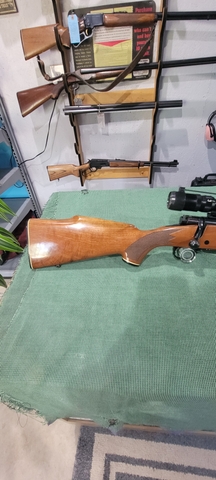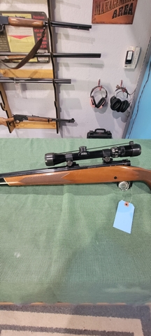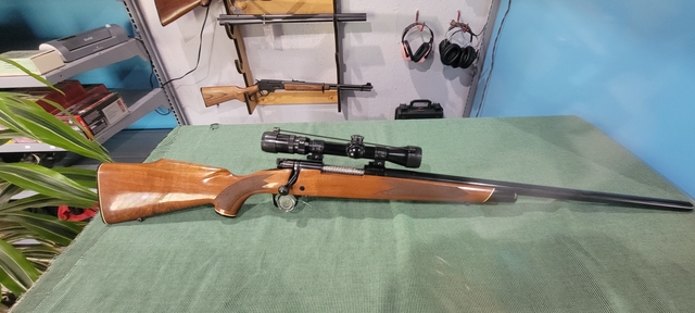 A nice, used, 1977 Winchester Model 70, 22-250 bull barrel, with a Bushnell scope. This rifle is in very good condition. $1350.00.