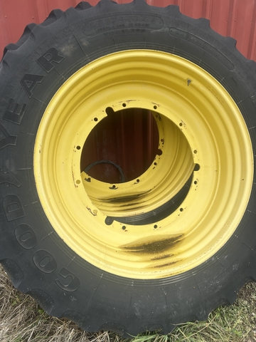 Two outside rims and tires for a John Deere tractor. Tires are round, black and hold air. Rims are good. Will consider offers. Call 785-650-7283.