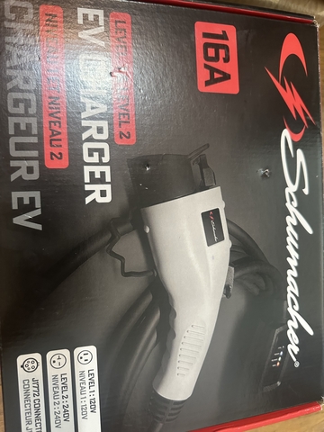 New Schumacher Electric SC1455 Level 2 Portable EV Charger - up to 16A, Works with 120V or 240V Outlets, 28-Foot Charging Cable, Charges EVs 3X Faster