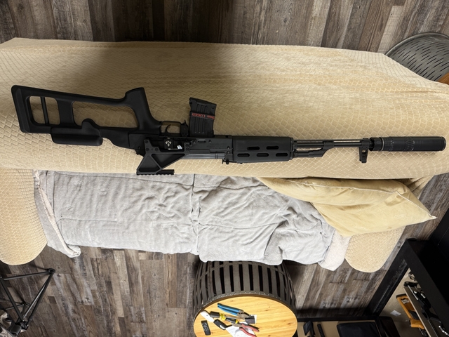 Chippa RAK 9mm. Ak sporter with crimson trace red dot. Has box. 2 original 10 round mags and adapter for Glock mags. Has one 33 round Glock mag. Looking to sell or trade. Has treaded barrel.