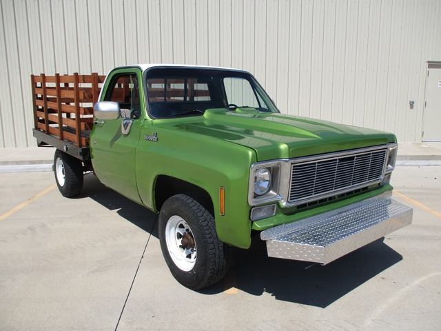 1976 Chevy K20 4wd newer paint, 350 V8, automatic transmission, power windows, power locks, new carpet, new door panels, new steering wheel, and flat bed with wood panels. This is a great start to a nice truck. Nothing mechanically wrong, starts, runs drives as it should, it can be your daily driver, or finish it to be whatever you want. No rust, straight and clean.