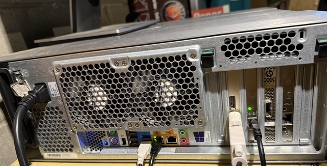 HP Z620 Zstation server. Essentially Server grade system in a desktop case. Guessing its 9+ years old, but its server hardware and still works fine. These are well known to be good work horses and last 12-15 years or more.