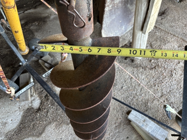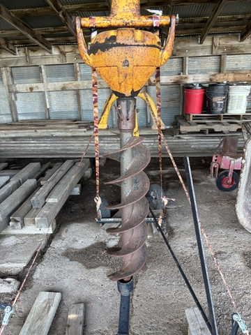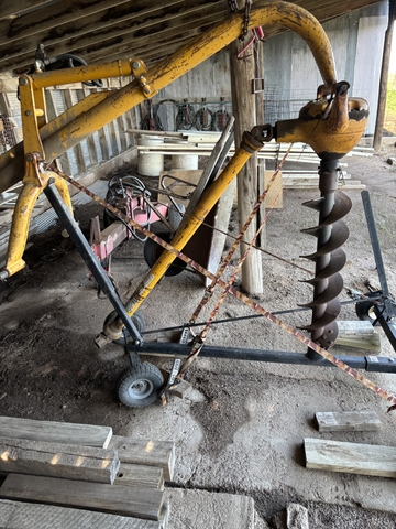 Three point post hole digger. Hydraulic down pressure. Stand with wheels. Two augers 9 inch and 12 inch. 540 pto.