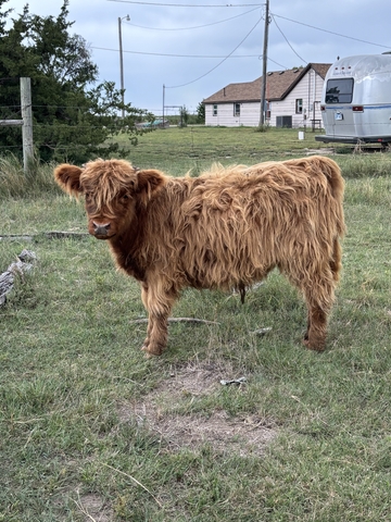 3 highland bull calves. 2 full blood highlands (7 months old & 4 months old), one 3/4 highalnd (7 months old). $2,500 each, willing to make a package deal. Call or text (620)214-4529.