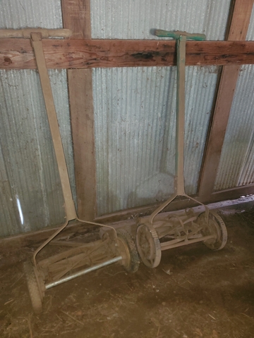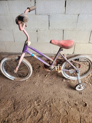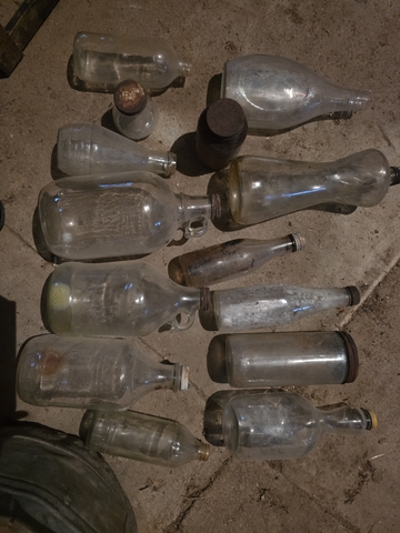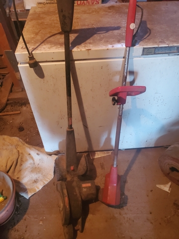 Trimmers, edger, basket ball goal, kids bike, glass bottles, head board, and more junk.